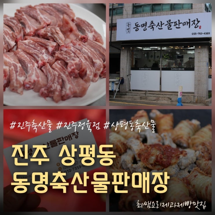 “이 글은 <예스코리아>로부터 제품 또는 서비스를 지원받아 진솔하게 작성된 리뷰입니다.” 안녕하세요. 최쌤입니다. 집밥 메뉴 고민하다가 오랜만에 푸짐한 메뉴가 먹고 싶어 진주 상평동에 있는 동명축산물판매장에서 등갈비를 준비해 집에서 등갈비 김치찜을 만들어 보았어요. 고기 상태가 워낙 좋아서 조리하는 내내 기분이 좋았고 완성된 김치찜도 가족들이 정말 맛있게 먹어 오늘은 믿고 방문할 수 있는 진주정육점 한 곳을 소개해 보려고 해요. 경남 진주시 솔밭로 93 (상평동) 1층 상평동 골목 코너에 위치해 있어 지나다니면서도 눈에 잘 띄는 자리였어요. 근처 주민분들이 단골로 많이 찾는 곳이라 지역에서는 이미 소문난 정육....... <img src="https://blogthumb.pstatic.net/MjAyNjA0MjZfMTUg/MDAxNzc3MjEzOTY3MDEz.hk2oMWjkyK7WAFRWMaRXpCVjPOVdpg1m3KQwo_zA2-Eg.qSLUvBphYNFq3fhjpF7nKvmsj7XWPIPj9QZRZD6gh48g.JPEG/900_20260426233230.jpg?type=s3" />