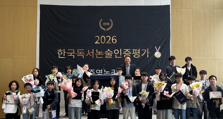 2026 한국독서논술인증평가대회 & 수료식 매년 봄, 박준영논리속독학원에서 주최하는 한국독서논술인증평가대회가 올해도 열렸습니다. 2026년 4월 11일 토요일, 롯데월드타워에서 논술 인증평가와 졸업식이 함께 진행되었습니다. 이번 대회에는 명일본원, 강남교육원, 미사교육원, 위례교육원, 남양주다산교육원, 인천부평교육원, 감일교육원, 파주운정교육원의 학생들이 참여했습니다. 평소 익숙하게 다니던 학원 교실이 아니라 많은 학생들이 모인 큰 장소에서 글을 쓰는 경험은 아이들에게 또 다른 긴장감과 설렘을 주었을 것입니다. 이런 큰 대회에서 논술을 써보는 경험은 아이들에게 큰 동기부여가 되고, 한 단계 더 성장하는 계기가 되....... <img src="https://blogthumb.pstatic.net/MjAyNjA0MjJfMjM1/MDAxNzc2NzgzNjI2ODI1.JHVdfiXvYulmpY0312As7cyU1hz5KiE71Ovk5yJjh98g.q2CTlCNjTOFnppDvFXiXCvA1xl7zUye2GFa4OYLCxKUg.JPEG/KakaoTalk_20260414_203924034_26.jpg?type=s3" />