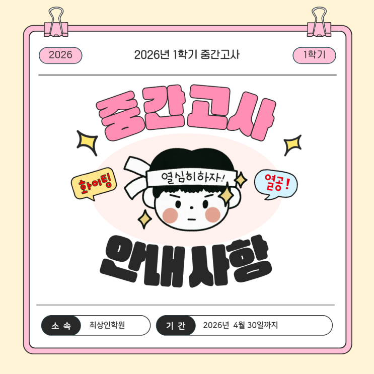성내동 영어 수학 학원|2026년 1학기 중간고사 일정 및 대비 안내 (최상인학원)