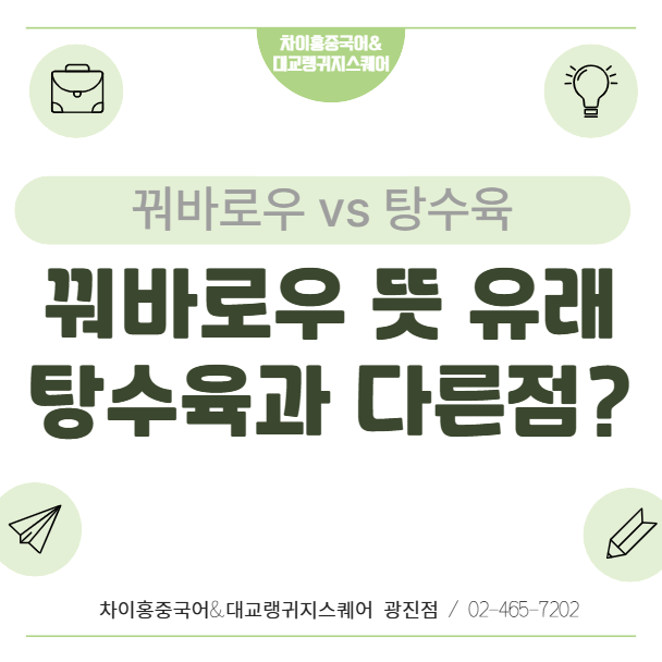 안녕하세요! 차이홍중국어& 대교랭귀지스퀘어 광진점입니다! 꿔바로우 이름만 보면 어떤 음식인지 바로 감이 오지 않지만, 실제로는 중국식 튀김 요리의 특징을 잘 보여주는 대표 메뉴입니다. 특히 탕수육과 비슷해 보이기 때문에 같은 음식으로 생각하는 경우도 많습니다. 는 재료의 사용 방식, 튀김옷의 식감, 소스의 성격에서 분명한 차이가 있습니다. 그래서 오늘은 꿔바로우 뜻과 유래를 먼저 살펴보고, 주문 전에 알아두면 좋은 핵심 포인트 3가지를 정리해 보겠습니다. 1. 꿔바로우 뜻은? 꿔바로우는 중국어 锅包肉를 한국식으로 읽은 표현입니다. 일반적으로 돼지고기에 전분 옷을 입혀 바삭하게 튀긴 뒤 소스를 입혀 완성하는 요리....... <img src="https://blogthumb.pstatic.net/MjAyNjA0MjJfMTE0/MDAxNzc2ODY3NTYzOTUx.dquOL1RF0_rY_GjMWjeF6oNBO4UNKG5gUCsVqbdAQYog.aq3ll61YZuKU5KwDV74ygnuvQEWWp53rKbUor_ERyCYg.PNG/image.png?type=s3" />