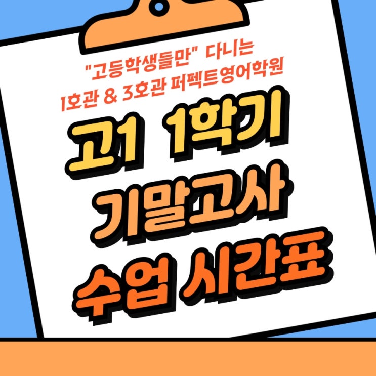 안녕하세요~ 1호관 고등관 퍼펙트영어학원 3호관 신월성 고등 2관 퍼펙트영어학원 1학기 기말대비 시간표 2026년 04월 04일 월요일부터 적용 계속해서 업로드하겠습니다 1차 업로드: 04/24(금) 2차 업로드: 3차 업로드: 4차 업로드: 5차 업로드: 6차 업로드: 7차 업로드: 8차 업로드: 9차 업로드: 10차 업로드: 달서구 지역 고등학생들의 내신 성적 향상을 위한 학교별 달서구 고등 티칭 경력 최소 5년 이상 전담 강사가 맞춤 집중 프로그램으로 운영됩니다. #대구영어학원 #달서구영어학원 #대구고등영어학원 #달서구고등영어학원 #퍼펙트영어학원 #신월성영어학원 #대구내신영어 #고등영어내신 #기말고사대비 #고등내신대비 #영남고영어 #상원....... <img src="https://blogthumb.pstatic.net/MjAyNjA0MjRfMjM4/MDAxNzc2OTY2ODk4MTYz.EMTJI1WteSEi4GFxgw_ZOo5m5X1XH52lAomJsWc8FNEg.pZt0G_qNwttf5MifuYkuODR5UhROwlwfr-3XDu38M2sg.JPEG/900_%C1%A6%B8%F1%C0%BB-%C0%D4%B7%C2%C7%D8%C1%D6%BC%BC%BF%E4_-021.jpg?type=s3" />