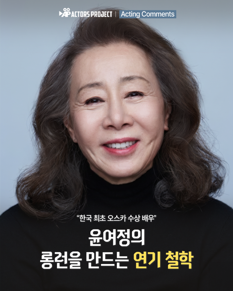 안녕하세요 엑터스 프로젝트 연기학원입니다! 한국 최초 오스카 수상 배우, 윤여정의 롱런을 만드는 연기 철학 수많은 작품 속에서 대체 불가한 존재감을 보여주는 윤여정 배우. 13년 만의 복귀작, 후배의 뼈아픈 지적에 주체할 수 없는 눈물을 흘렸던 시절. 한국 최초 오스카 수상이라는 빛나는 타이틀 뒤에는 '살기 위해 목숨 걸고' 연기했던 윤여정 배우의 치열한 시간이 있었습니다. 50년 넘게 롱런할 수 있었던 그녀만의 '진짜 연기' 노하우를 만나볼까요? ✔️ 대사는 완벽하게 : 토씨 하나 틀리지 않고 자연스럽게 쏟아져 나올 때까지 ✔️ 메소드 연기의 본질: 내가 이 사람이라면?'이라는 마음으로 극의....... <img src="https://blogthumb.pstatic.net/MjAyNjA0MjFfMjAw/MDAxNzc2NzUyNDYzMDU0.1LjHhbdTrkOym8EaOVDxorGefKNNEm-3Aja3r1K-eQQg.oF3jhFjNys_4x1SvYNnagRN8582cBTAXU1ArhKa50f0g.PNG/image.png?type=s3" />