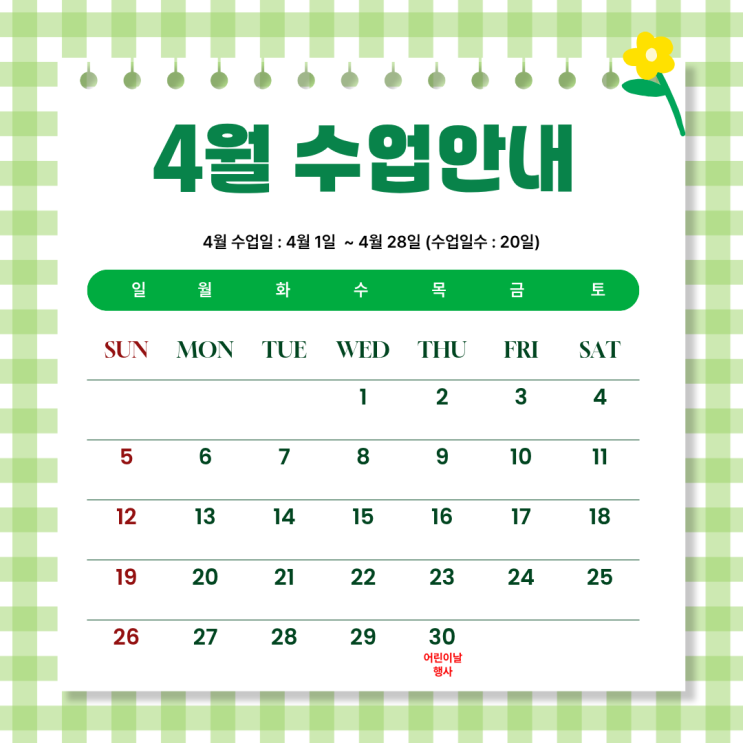 세종 반곡동 리딩온영어 4월~5월 수업일정 안내