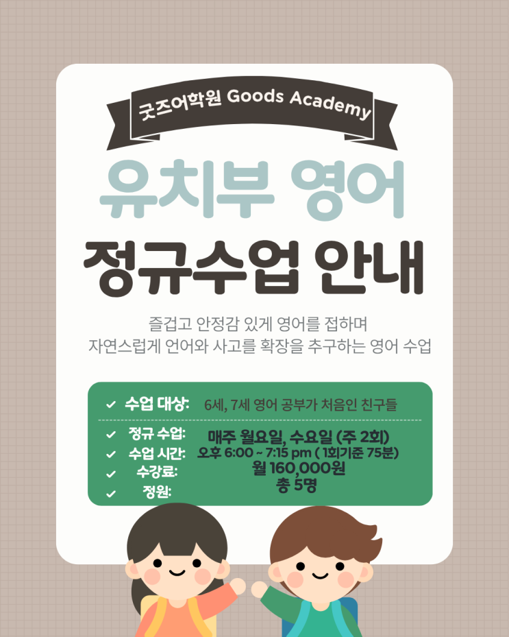 [공지] 굿즈어학원 유치부 정규 수업 안내