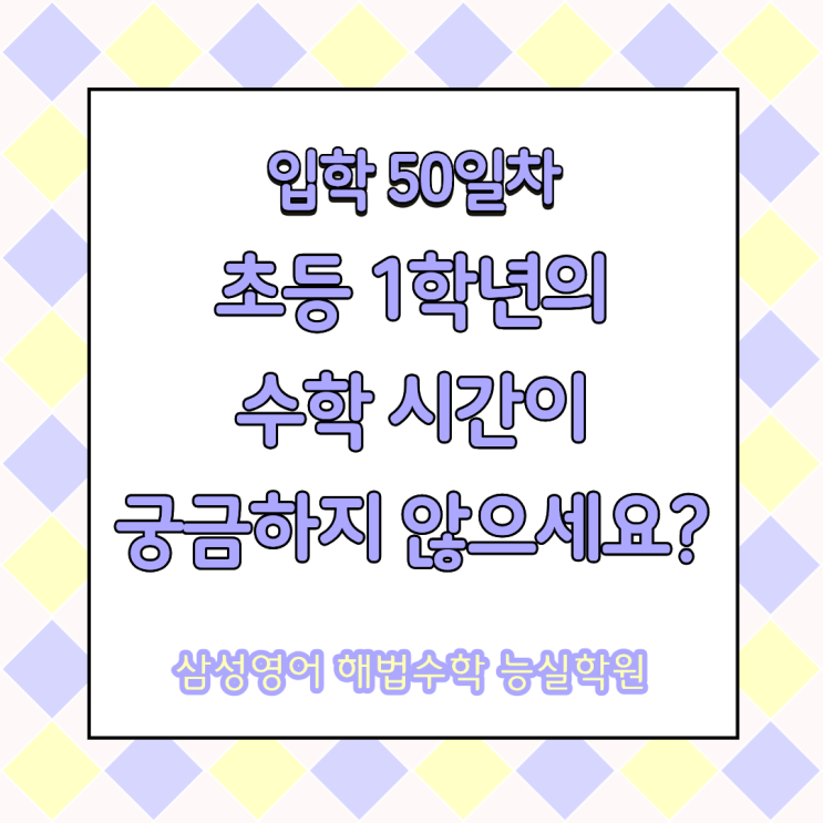 안녕하세요!! 아이의 미래를 디자인하는 삼성영어 해법수학 능실학원입니다. #호매실동수학학원#호매실동영어학원 오늘은 우리 학원의 막내들을 소개해 보려 해요. (사실, 자랑글입니다!!) 매년 초등 1학년 신입생을 맞이하게 되는데 우리 막내들을 생각하면 귀엽다 귀엽다 귀엽다..... 이 말만 나오게 됩니다. 그런데 이 귀요미들이 공부하는 모습은 어찌나 의젓한지 몰라요. 50분이라는 수업 시간을 형아, 누나, 언니, 오빠들 못지않게 집중해서 공부하거든요. 초등 1학년의 수학 수업이란.. 입학 50일차를 맞이한 초등 1학년은 무얼 배울까요? 수학만 배우는 것이 아닙니다!! 아이들은 등원하게 되면 스스로 하루 학습 체크리스트 작성을 먼저....... <img src="https://blogthumb.pstatic.net/MjAyNjA0MjVfMjMx/MDAxNzc3MDQ3MjY1OTAx.9So8eyXluTFRdBQDlMfquLQlU5oWwKZhm3blaezhKFIg.QwmFKzCTE3E4XshgUoVUKjKXUBXy0goA1c8Nq0NYWzAg.PNG/%C0%D4%C7%D050%C0%CF%C3%CA%B5%EE1%BD%E6%B3%D7%C0%CF.png?type=s3" />