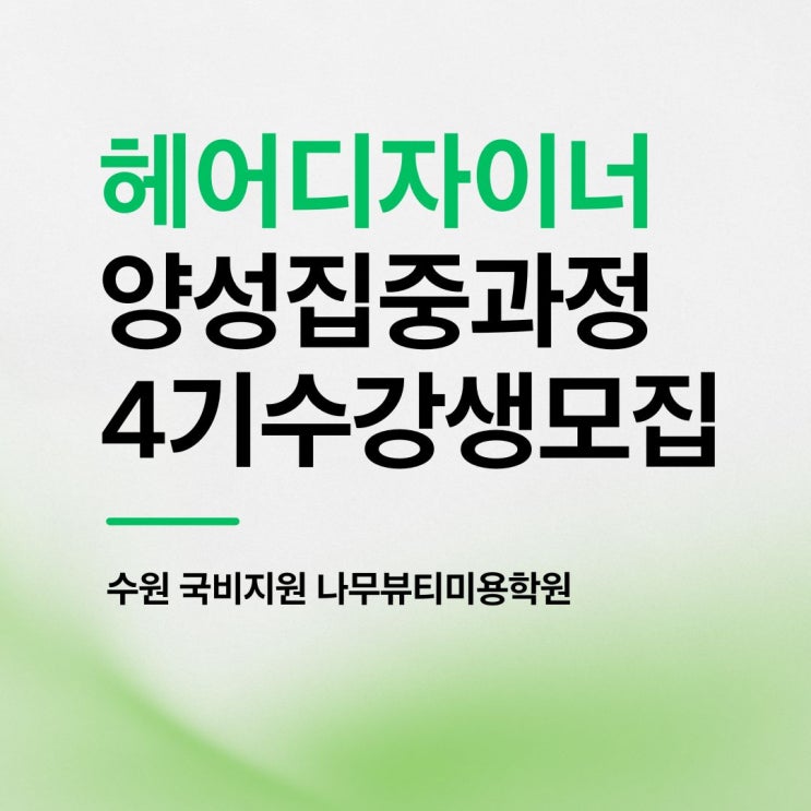헤어디자이너 양성 집중과정 15주 과정의 결과 나무뷰티미용학원 안녕하세요. 블로그지기입니다. 4월 14일, 헤어디자이너 양성 집중과정 3기의 마지막 수업와 수료식이 있었습니다. 15주동안 함께 달려온 수강생 여러분께 진심으로 응원의 박수를 보내고 싶습니다. 오늘은 그 생생한 현장을 사진과 함께 공유해드리려고 합니다. 헤어디자이너 양성 집중과정 나무뷰티미용학원의 헤어디자이너 양성 집중과정은 단순한 기술 입문 교육이 아닙니다. 미용 기본기를 갖춘 분들이 한 단계 더 성장할 수 있도록 설계된 실무 심화 과정으로, 인턴, 경력 단절 후 복귀를 준비하는 분, 현직 헤어디자이너로서 기술을 업그레이드하고 싶은 분들이 주로 수강....... <img src="https://blogthumb.pstatic.net/MjAyNjA0MTVfNSAg/MDAxNzc2MjM1NDMzMzY0.avXQ9IF-FF0-yojvKglqJVcOR5x4tU3JGPVNaEcnteEg.SAp5SgEFAVCjvHyPwNTki82cFdyl8vf0wRPU12b2ayog.JPEG/%BD%E6%B3%D7%C0%CF.jpg?type=s3" />