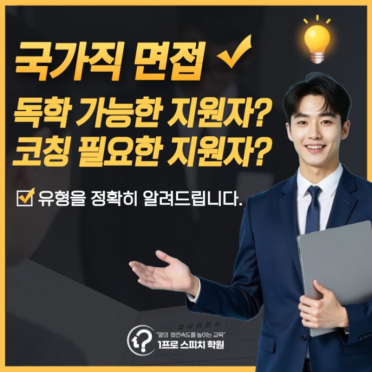본 콘텐츠의 광고주는 1프로스피치학원, 작성자는 clack1974 입니다. 국가직 필기 합격 후 가장 많이 나오는 고민 중 하나가 있을 겁니다. ①바로 국가직 면접을 혼자 준비해도 되는지? ②국가직 면접 스터디를 알아봐서 연습하는것만으로도 가능한지? ③아니면 전문적인 면접학원의 도움을 받는 것이 나은지에 대한 부분에 대한 고민! 실제로 1프로 국가직 면접학원에서는 상담을 하다 보면, 국가직 필기는 스스로 해냈기 때문에 면접도 혼자 가능하다고 생각하는 분들도 있습니다. 그래서 상담을 하고 면접 테스트를 단계별로 해보면 ① 국가직 면접학원이 필요없는 지원자(독학/스터디로도 충분) ② 학원이 필요한 지원자 ③ 학원이 필요하지....... <img src="https://blogthumb.pstatic.net/MjAyNjA0MTlfMzUg/MDAxNzc2NTM0MzY2MDU3.QndV3pdZ14khGIS1CplVog6xCo6OSUU7S2Xvc4rtu7gg.rK0iVwEJM_5iUzEOrVv1zvVLRJBtfHrYnPnJP7wOWRUg.PNG/%B1%B9%B0%A1%C1%F7%B8%E9%C1%A2_%B0%F8%B9%AB%BF%F8%B8%E9%C1%A2%C7%D0%BF%F81.png?type=s3" />