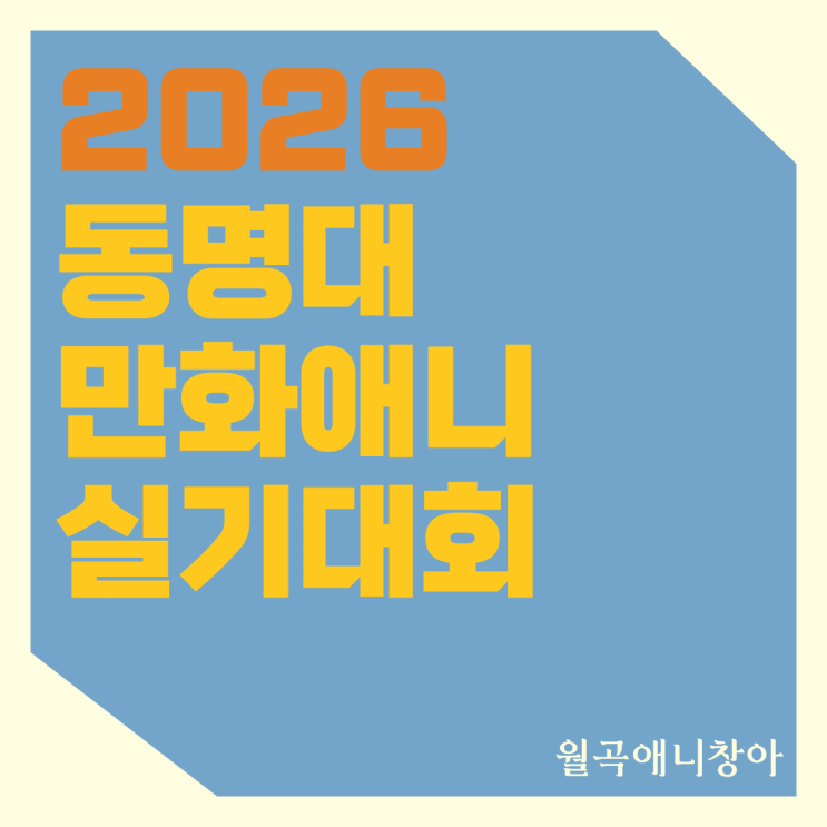 안녕하세요, 월곡애니창아입니다 :) 오늘은 2026 동명대학교 만화애니 실기대회 일정을 정리해드릴게요. 만화·애니메이션 입시를 준비하고 있다면 실전 경험을 쌓을 수 있는 좋은 기회라 꼭 체크해보시길 추천드립니다. 참가자격 전국 고등학교 재학생 및 졸업생 (동등 이상 학력 소유자) ※ 대학생 참여 불가 접수방법 2026년 4월 1일(수) ~ 4월 29일(수) 엠굿 홈페이지 인터넷 접수 참가비 45,000원 ⬇️⬇️엠굿 홈페이지 링크 남겨 드려요⬇️⬇️ 대회일시 2026년 5월 9일(토) 09:00 ~ 15:00 동명대학교 건축디자인과 현장 실기 참가부문 사고의전환 / 2절 / 5시간 기초디자인 / 4절 / 4시간 발상과표현 / 4절 / 4시간....... <img src="https://blogthumb.pstatic.net/MjAyNjA0MTlfMTQz/MDAxNzc2NTc1ODY0ODM4.WNk_UjAeAPGgklvh9trrNEWYdfuhDDYZcyCwpUjBMHYg.V2ahX-ECPY3DNu53cKXondvYrPPeAllyn3cZF7Z5Gxkg.PNG/1.png?type=s3" />