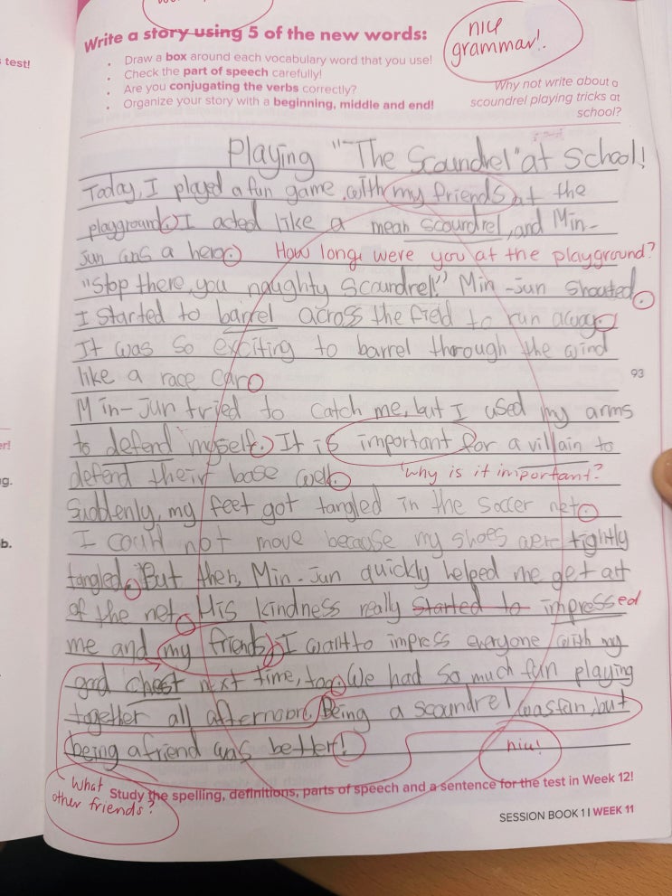 안녕하세요! 학부모님 ✨ 따스한 햇빛이 온 몸을 감싸니 진정한 봄이 왔음을 느낍니다:) 오늘은 오랜만에 저희 자랑스러운 트윈클분당 학생 소식을 들고 왔습니다! 오늘은 우리 학원의 작가, 2학년 Jenna학생이 직접 작성한 따끈따끈 '보캡 스토리(Vocabulary Story)'를 소개해 드리려고 합니다. 트윈클의 보캡 스토리 라이팅은 단순히 단어를 외우는 것에 그치지 않고 새롭게 배운 단어 5개를 활용해 자신만의 기승전결이 있는 이야기를 만들어내는 고차원적인 학습 과정인데요! Jenna가 이번 주에 어떤 멋진 이야기를 들려주었는지 함께 보실까요? Jenna의 Story: "Playing 'The Scoundrel' at School!&quo....... <img src="https://blogthumb.pstatic.net/MjAyNjA0MTdfMiAg/MDAxNzc2NDAxNDIxMjIy.TagT-MfmfgBxQzKkWz7hmREMiIZ7h3_zCn0h7BDQfNIg.2HtweVF-CKqaBUYlWj9etNbb2F98vrEtVTONglN9lrcg.JPEG/2T_Talking_Lions_-_Jenna.jpg?type=s3" />