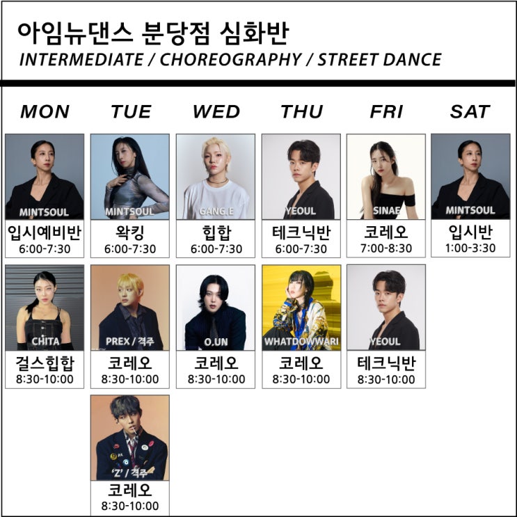 아임뉴댄스 분당점 심화반 취미반 시간표 업데이트 2026. 4. 20