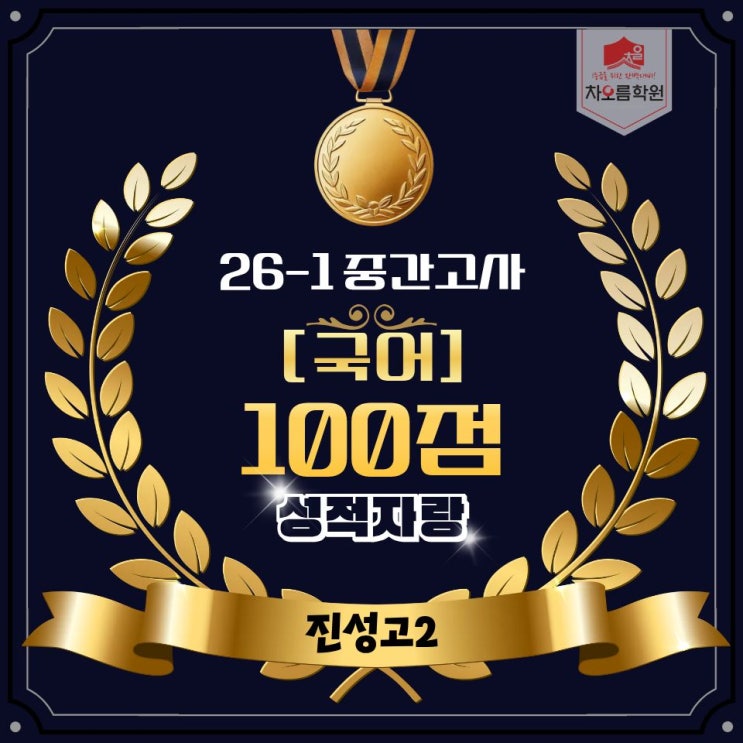 안녕하세요! 차오름학원입니다❤️ 오늘은 기분 좋은 소식을 전해드리고자 합니다! 바로 진성고등학교 2학년 중간고사에서 우리 오름이들이 좋은 성과를 거두었다는 소식입니다✨ 100점: 3명 예상 90점: 이상 12명 예상 이번 중간고사에서 진성고등학교 2학년 오름이들 중 국어과목 100점을 받은 오름이들이 "3"명이며 또한 90점 이상의 오름이들 또한 "12"명이 예상 됩니다 (현재까지 집계된 성적 기준) 오름이들, 올해 첫 중간고사라 많이 긴장되었을 텐데 끝까지 집중력을 잃지 않고 최선을 다해준 모습이 정말 인상 깊었습니다. 그 결과 이렇게 좋은 성과로 이어진 점, 진심으로 축하하고 자랑스럽습니다 이번 시험....... <img src="https://blogthumb.pstatic.net/MjAyNjA0MjZfODMg/MDAxNzc3MTY3ODk0NjU4.LRBmS05pVuvdbxseZPPHXT9Z9nUHhEIyD2UblAfYwcwg.ACowh8Io5r8vcA6xwP15OkS8DeSnVwhc-dbHgvZ_j8cg.JPEG/1.jpg?type=s3" />