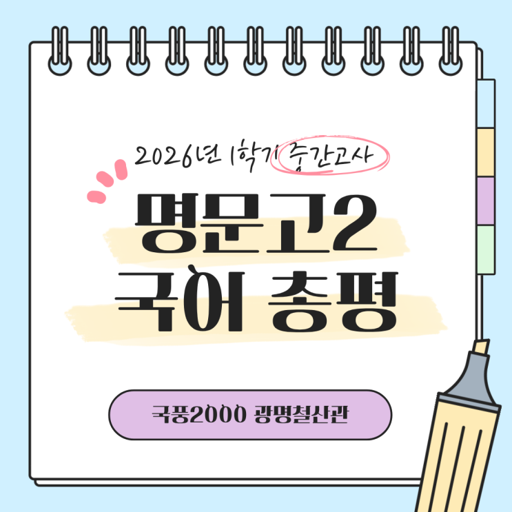 국풍2000 광명철산직영관입니다. 명문고 2학년 1학기 중간고사 문학 총평입니다. 총평 및 난이도 이번 시험은 서답형으로만 24문항이 출제되었으며 난이도 중하 정도인 대체로 평이한 문항이 출제되었습니다. 3~4문항 정도를 제외하고는 정답이 명확하게 드러나서 그리 어렵지 않게 풀었을 것으로 보입니다. 전체적으로 작품의 내용을 숙지하고 있었다면 문제 해결에 도움이 많이 되었을 것으로 보입니다. 고전소설 1작품, 현대소설 1작품, 현대시 4작품, 고전시가 5작품이 출제되었고 이중 시험범위 외에 <어부사시가>와 연계하여 외부 작품 <강호사시가>가 출제되었습니다. 외부 지문이 연계되어 출제되었으나 외부 지문에 대한 단....... <img src="https://blogthumb.pstatic.net/MjAyNjA0MjVfMTg0/MDAxNzc3MTA1NTMyODE4.br78KUCiX4LcuwDmmiEnfUagai-rUbiLZBcdgLQGnlsg.eNY3qzw1Wgs6siJZCOzpiWIyMguhPy8P8XNRpS1CnP8g.PNG/1.png?type=s3" />