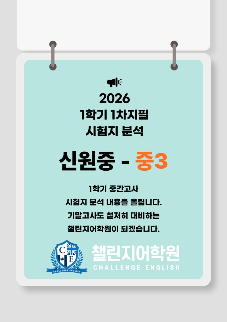 [신원중 내신분석] 2026년 3학년 1학기 중간고사 영어 내신 완벽 분석! (챌린지 어학원)
