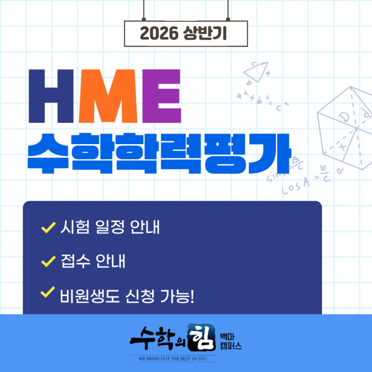 [마두동ㅣ수학의힘 백마캠퍼스] 2026 상반기 HME 해법수학 학력평가 신청 안내