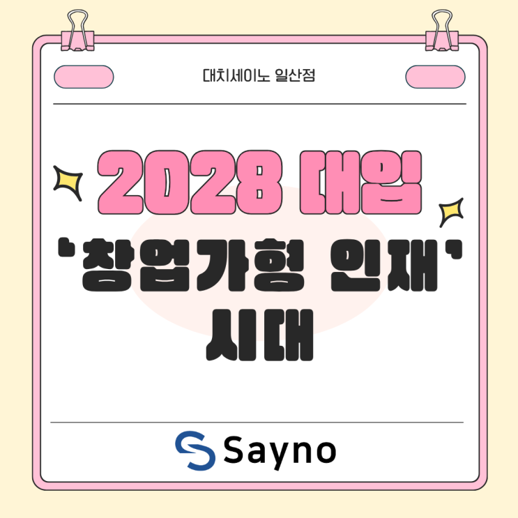 안녕하세요! 대치세이노 일산점입니다. 2028학년도 대입은 단순한 제도 변화가 아닙니다. 대한민국 교육이 어떤 인재를 선발할 것인지에 대한 기준 자체가 바뀌고 있습니다. 이제는 지식을 얼마나 많이 알고 있는지가 아니라, 그 지식을 활용해 실제 문제를 어떻게 해결할 수 있는지가 중요해지고 있습니다. 특히 서울대학교 공과대학의 변화는 이러한 흐름을 가장 잘 보여주는 사례입니다. 이번 글에서는 카드뉴스 6장의 흐름에 맞춰, 2028 대입이 요구하는 ‘창업가형 인재’의 의미를 살펴보겠습니다. 서울대학교 공과대학은 이미 이러한 변화를 실험하고 있습니다. ‘창업가형 공학기술 혁신인재 프로그램’을 통해 학생들은 단순히 공부하는....... <img src="https://blogthumb.pstatic.net/MjAyNjA0MTBfODIg/MDAxNzc1ODAwMzA1NTQ1.QJ9ZJi14tsEbzHD7d6uv8eK6Y0NaizROhK9PxH8MwUgg.IXuzu308mcGJUgulE6IeNps11gKYXL_lzXzw7zB_IZAg.PNG/1.png?type=s3" />