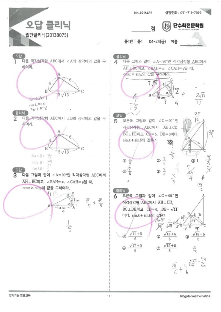 [사직동/거제동 수학학원-단수학전문학원]4월 오답클리닉