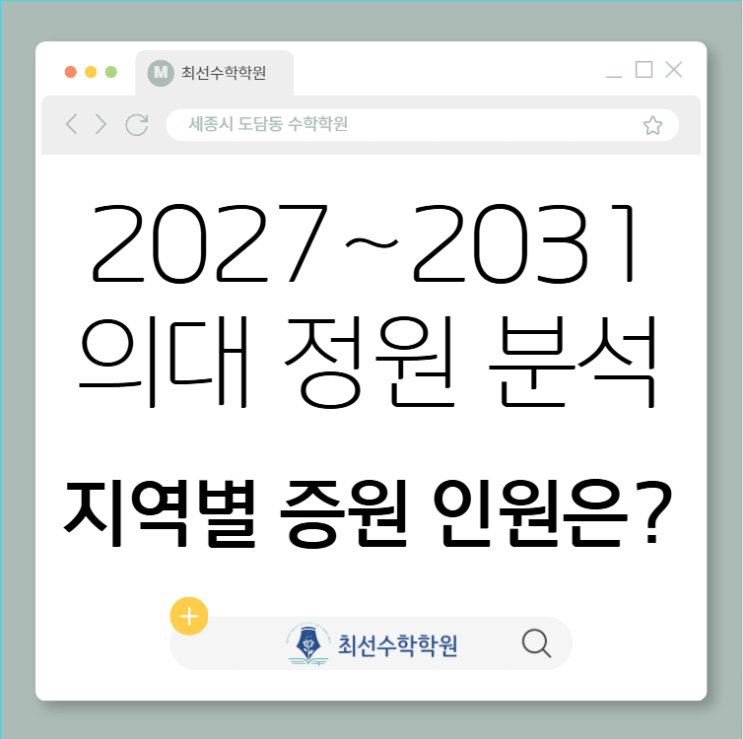 세종시 도담동 수학학원, 2027~2031 의대 정원 분석, 지역별 증원 인원은?