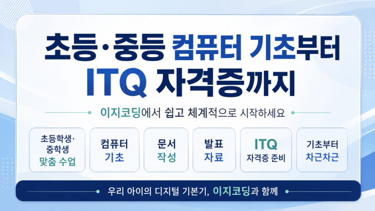 [은평구 컴퓨터 학원] 초등·중등 컴퓨터 기초부터 ITQ 자격증까지, 이지코딩에서 시작하세요~!