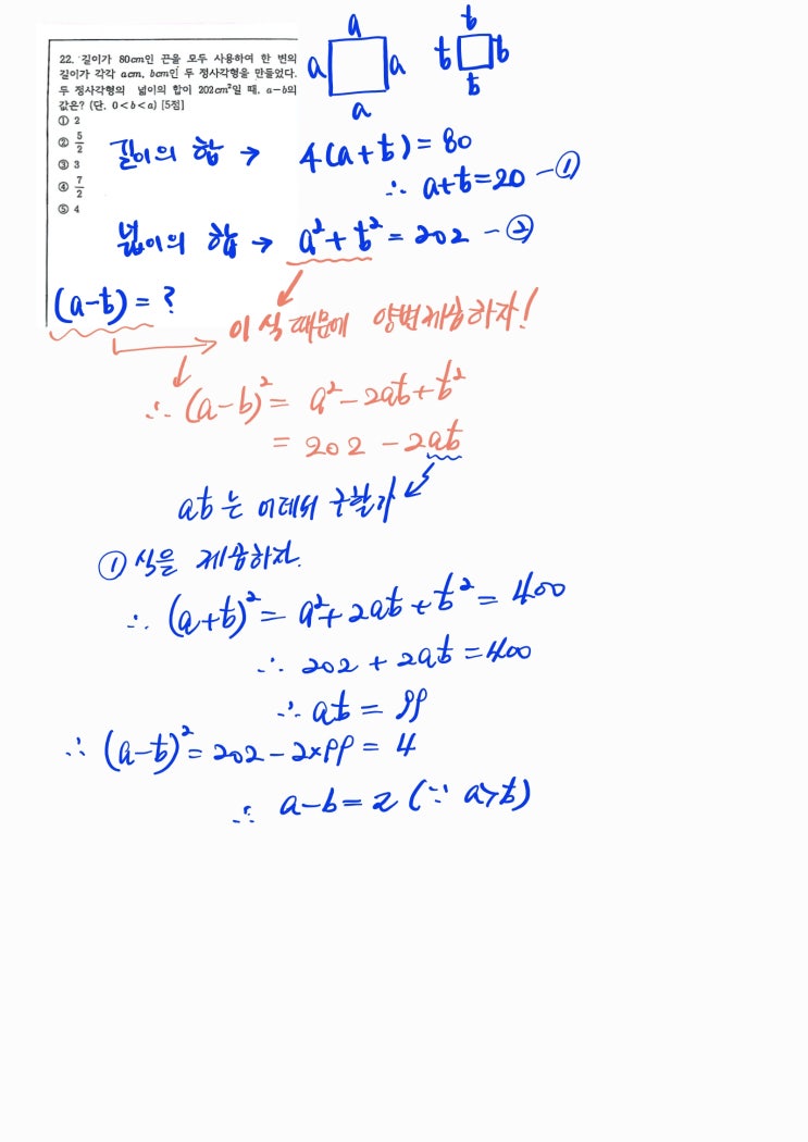 덕산중학교 수학 시험 전날 직보하면서 느낀점 1.평소 문제를 많이 풀어도 체계를 잡고 푸는것과 문제량만 증가 시킨것의 차이 2.기본 유형을 살짝 변형했을때 , 학생마다 어떻게 접근할수 있는지 시간차가 존재한다는 것 바로 이런 차이점 때문에 같은 학원을 다니고 같은 시간 공부해도 점수차가 발생한다. 과년도 기출문제ㅡ풀면서 질문이 들어왔다 문제에서 요구하는 조건 식을 세웠으나 그 이후 어떻게 계산을 해서 마지막 문제 출제자가 질문하는 것을 해결할지 버벅대는 정도차이가 잛은 시험 시간속에 제대로 풀이하냐? 아니면 그냥 시험시간 압박속에 찍고 나오냐 차이로 벌어지고 그결과가 점수차로 나온다 --평소 문제를 풀때 각 계산....... <img src="https://blogthumb.pstatic.net/MjAyNjA0MzBfMTE2/MDAxNzc3NDc2NTY5NTgz.rTJDRDDj-08f-PjZ3uuIilitlMc7uYQPu1JnCHn6ChYg.xDcTMB7Z3RYRVmJQjUYcLhp8wbbmWvWeq1e7kFcSAQEg.JPEG/1.jpg?type=s3" />