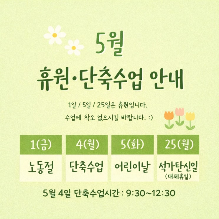 5월 휴원•단축수업 안내