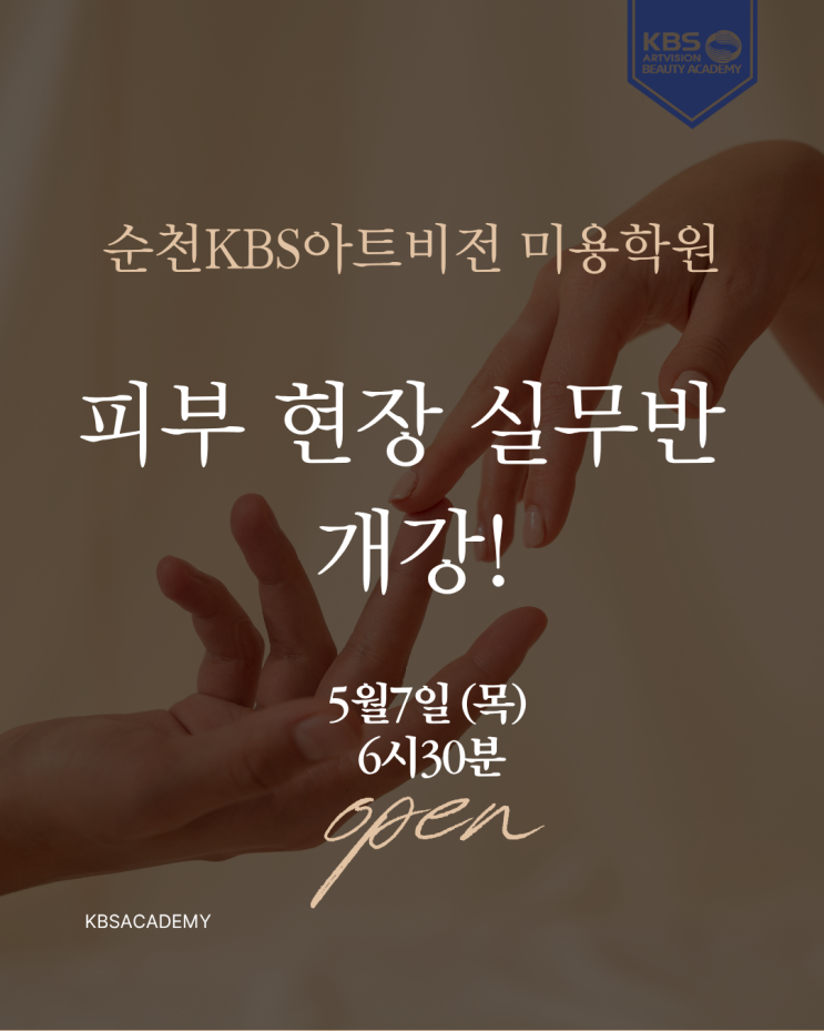 안녕하세요 순천 KBS아트비전미용학원입니다! 오늘은 현장에서 바로 활용 가능한 실무 중심 교육! 많이 기다리셨던 피부 현장 실무반이 드디어 개강되었습니다 이번 과정은 단순히 이론 수업이 아닌 실제 샵에서 사용하는 테크닉과 흐름을 중심으로 진행되어 취업이나 창업을 준비하는 분들께 특히 추천드리는 과정입니다 *실제 현장에서 사용하는 관리 방법 *고객 응대 및 실무 테크닉 *피부 관리 전반의 실전 노하우 등등 모든 것을 한 번에 배울 수 있는 기회랍니다 개강일정 피부 국가자격증 취득 후 이제 실무가 고민이다.. 하셨던 분들! 혹은 바로 현장에 투입될 수 있는 실력을 쌓고 싶은 분들께 정말 좋은 기회입니다 소수 정예로 진행되....... <img src="https://blogthumb.pstatic.net/MjAyNjA0MjNfOTMg/MDAxNzc2OTIzOTg0Mzc3.y3lupXQn3wJkvTGWHRTEnTEvcgDYxTJ4f_shrzDOKVAg.Hskm4sfxTMzx-OD4Kxa0tUxi-1BKfHKhRoTdj0kmatkg.PNG/image.png?type=s3" />