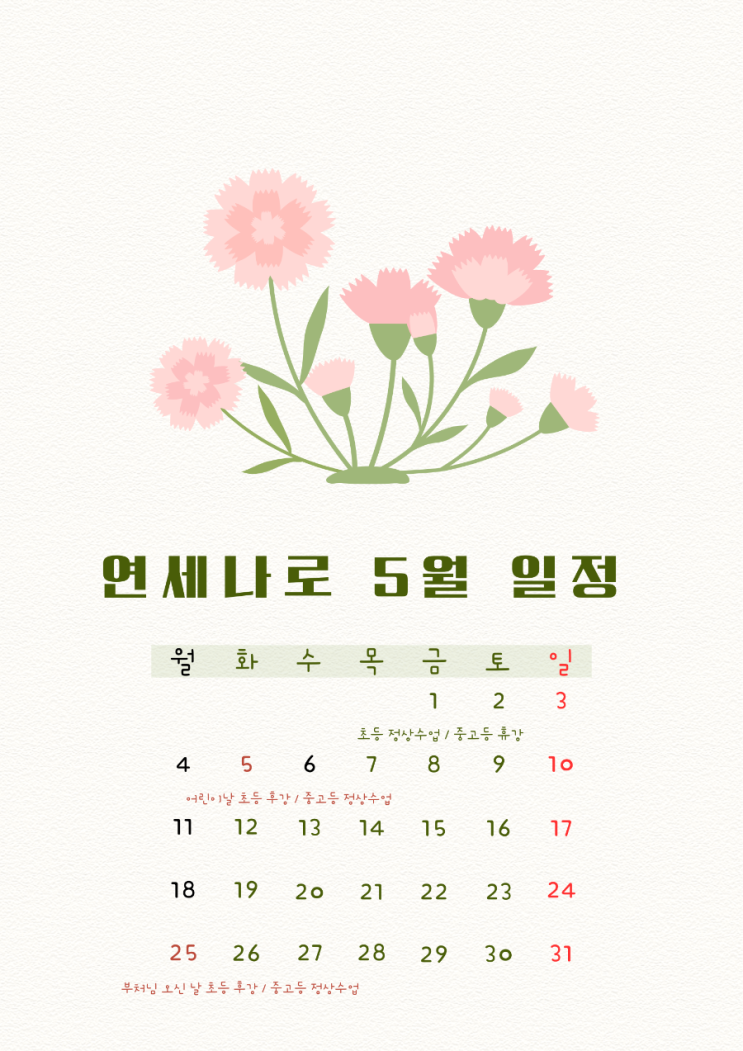 5월 수업일 안내