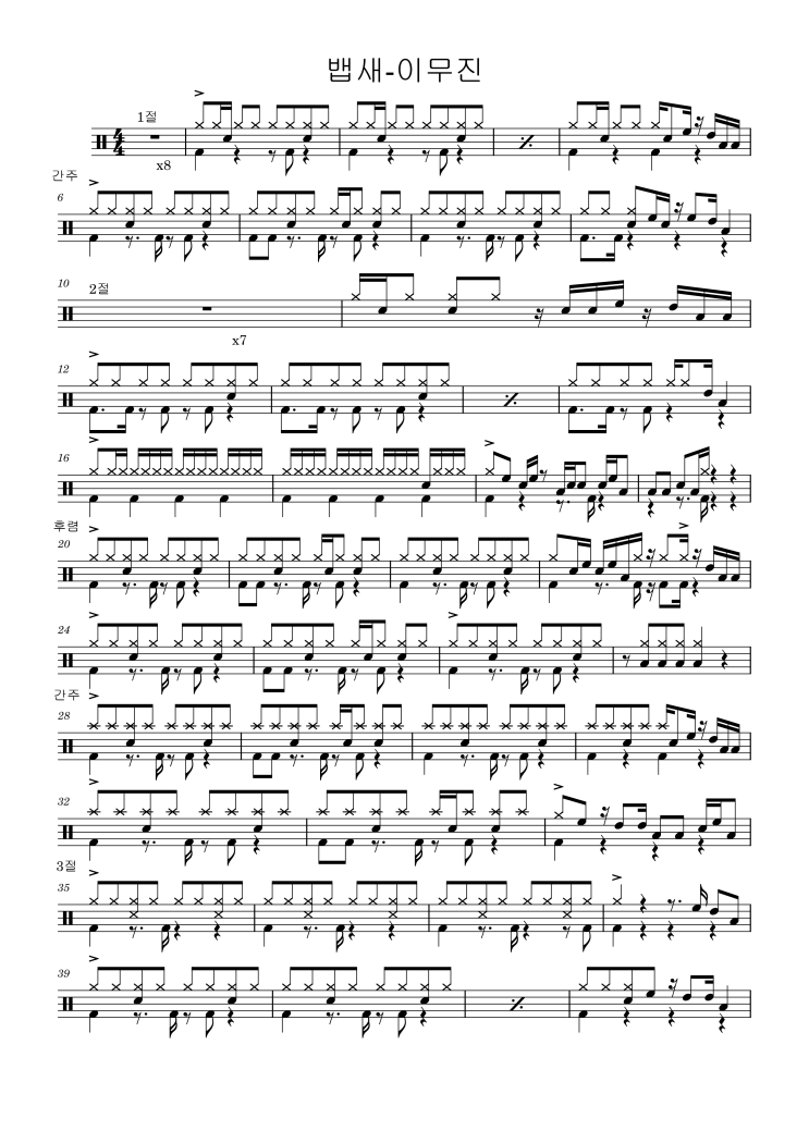 필인에 16분 쉼표가 많습니다. 어떤 손으로 칠지 먼저 정해놓는 것이 편합니다. *연습하면 큰 어려움 없이 치실수 있도록 취미 드러머분께 맞춰 쉽게 편곡된 악보입니다. 원곡과 똑같은 악보를 원하시는 분은 악보사이트를 참조하세요. #쉬운드럼 #쉬운드럼악보 #이무진_드럼 #뱁새 #뱁새_드럼 <img src="https://blogthumb.pstatic.net/MjAyNjA0MjFfNDUg/MDAxNzc2NzMzNDU4NjM2.Xu5d2yO0RDClvlR3epEYxOy1_KnYhStN6_K-rRHGJ1Eg.ANz93TFThr8F47W3uAYwGqC31lL6lg9tPFvTHeOiha4g.PNG/%B9%ED%BB%F5-%C0%CC%B9%AB%C1%F8-1.png?type=s3" />