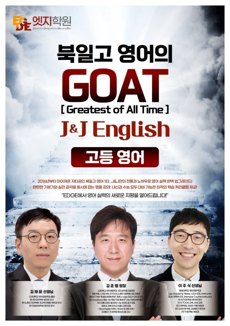 안녕하세요. EDGE J&J ENGLISH입니다. 이번 주 7회차 수업을 통해 1회고사를 위한 모든 시험 범위 진도가 성공적으로 완료되었습니다. 최근 일교차가 심한 환절기에 접어들면서 비염과 감기로 고생하는 아이들이 부쩍 늘었습니다. 시험을 앞두고 컨디션 난조로 실력을 발휘하지 못하는 일이 없도록, 개인 위생과 충분한 수분 섭취 등의 건강 관리에도 각별한 주의를 부탁드립니다. J&J ENGLISH 북일고 1학년 (51기) [학습내용] 원서 교재: Q: Skills For Success 4 Unit 2_Reading 2 (Sustainable Buildings) - 고난도 어휘 및 지문의 논리 구조를 완벽 분석 모의고사: 3월 서울시 교육청 모의고사 해설 Part 2 - 내신 실전 대비 논....... <img src="https://blogthumb.pstatic.net/MjAyNjA0MjNfMjg3/MDAxNzc2OTMyNzg1MDUy.noe4UViO8U9ZlTp3UWpzpbwGZSzrPCMYtyupKh3c4Zkg.vWw6SReuGAHFCESE5I99XpB44zdytrGptONZj1CUmdgg.JPEG/%BF%B5%BE%EE.jpg?type=s3" />