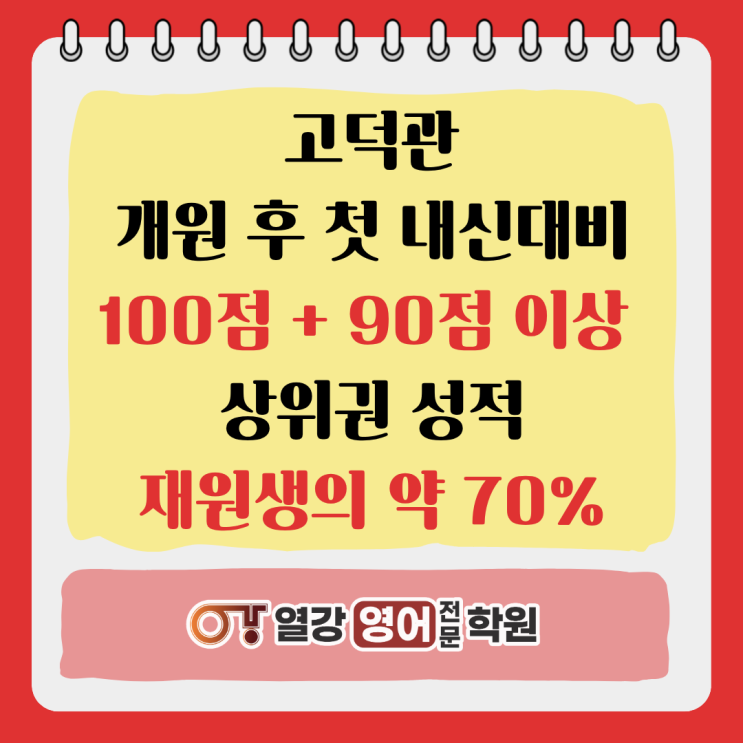 [고덕관] 재원생 70% 이상 90점 이상 고득점 / 개원 후 첫 내신대비가 이렇게 성공적일 수 있나요~?