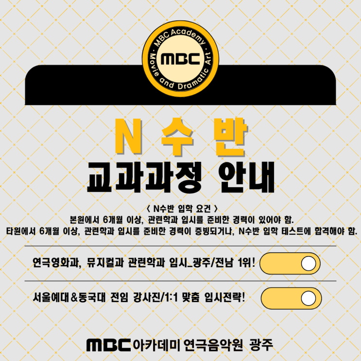 광주연기학원 MBC아카데미 연극음악원 N수반 & 대학입시반 교과과정안내