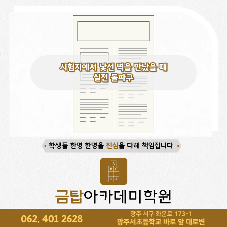 시험지에서 낯선 벽을 만났을 때, 광주 화정동 학원 금탑아카데미가 제안하는 실전 돌파구