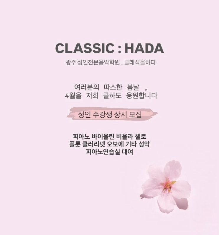 (❤️광주성인전문음악학원/클래식을하다)4월의 따뜻한 봄날, 예쁜 벚꽃과 함께 클래식을하다 수강생분들도 항상 행복하시길 바래요^^