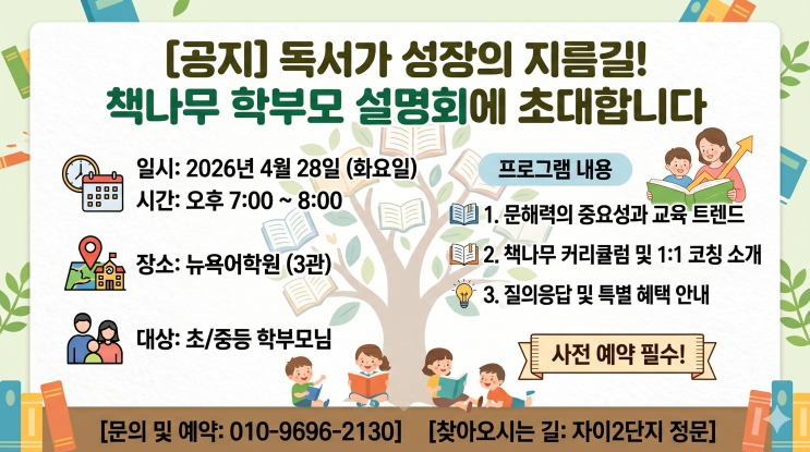독서가 공부의 기초입니다! '책나무' 학부모 설명회에 초대합니다