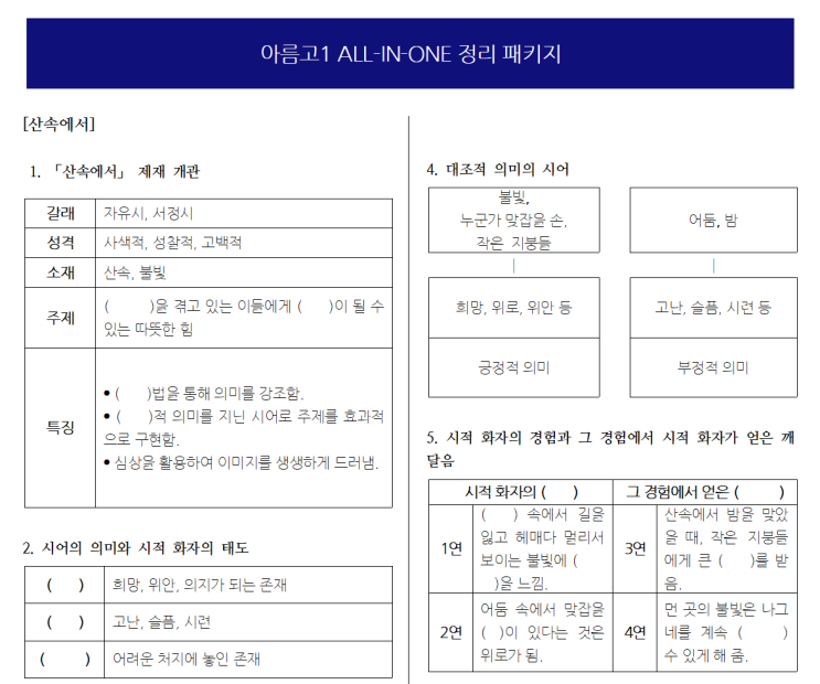 안녕하세요! 세종시 아름동 로운 국어 전문 학원입니다. 오늘은 이번 시험 대비에 제작했던 아름고1 샘플 자료 업로드해보겠습니다. 아름고1은 학교에서 프린트로 교과서 외 외부 자료를 사용했는데, 난이도가 높은 <수오재기>와 <모란이 피기까지는>, <이옥설>이 출제되었습니다. 이에 따라 작품들을 꼼꼼하게 공부할 필요가 있었고, 이를 대비하기 위하여 본원에서는 '본문 해설 및 수업 - 기본 문제 - 심화 문제 - 구두 테스트를 통한 내용 이해 확인 - 복습 올인원 정리지' 활용을 통해 시험 대비를 진행하였습니다. 까다로운 문법 역시도 배부 자료와 타 학교 기출 문제집 등을 활용하여 잘 대비를 진행했고, 최....... <img src="https://blogthumb.pstatic.net/MjAyNjA0MjdfNyAg/MDAxNzc3MjcwNDYzMzYx.QFU8h6eogtiCEcMsweKJBWd4QbZrUJ2GyXLF5xwj0iYg.z8ZEtq6zIO8acFWNx2N-cMr9ShmhLsm5bLG9Z4I3Q90g.PNG/%BE%C6%B8%A7%B0%ED_%BB%F9%C7%C31.png?type=s3" />