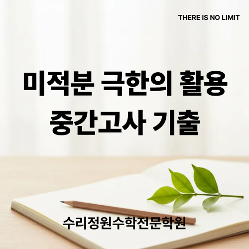 안녕하세요, 수리정원입니다. 오늘은 미적분 중가고사 기출문제를 다루어 보도록 하겠습니다. 극한으로 정의된 함수와 로그·지수 함수의 교점을 묻는 문제를 살펴보겠습니다. 복잡해 보이지만 핵심은 하나, x의 범위에 따라 극한값을 나누는 것입니다. 문제 다음과 같이 함수 f(x), g(x)가 주어져 있다. f(x) = lim(n→∞) [ x^(4n) + x^(2n)·sin(n(x - b)) ] / [ x^(4n) + 1 ] g(x) = ln x (x > 0) (e/2)·e^x (x ≤ 0) 함수 f(x)는 x = a를 제외한 모든 실수에서 정의되고, 두 그래프 y = f(x), y = g(x)의 교점의 개수가 2개일 때, a + 2b의 값을 구하시오. 풀이 (1) f(x)의 값 구하기 (핵심) x의 크기에 따라 나....... <img src="https://blogthumb.pstatic.net/MjAyNjA0MjNfMjk0/MDAxNzc2OTE1MzE3Nzk4.HHLccyccdVBum9qnuCVEUXW9a9t4Zgy_lDm1yhpdqFwg.B7lMgOoOVpHoOBzL_8bX1pqrYVxPggpl9S2hbQP_zDAg.PNG/%C1%A6%B8%F1%C0%BB_%C0%D4%B7%C2%C7%D8%C1%D6%BC%BC%BF%E4._-_2026-04-23T123502.295.png?type=s3" />