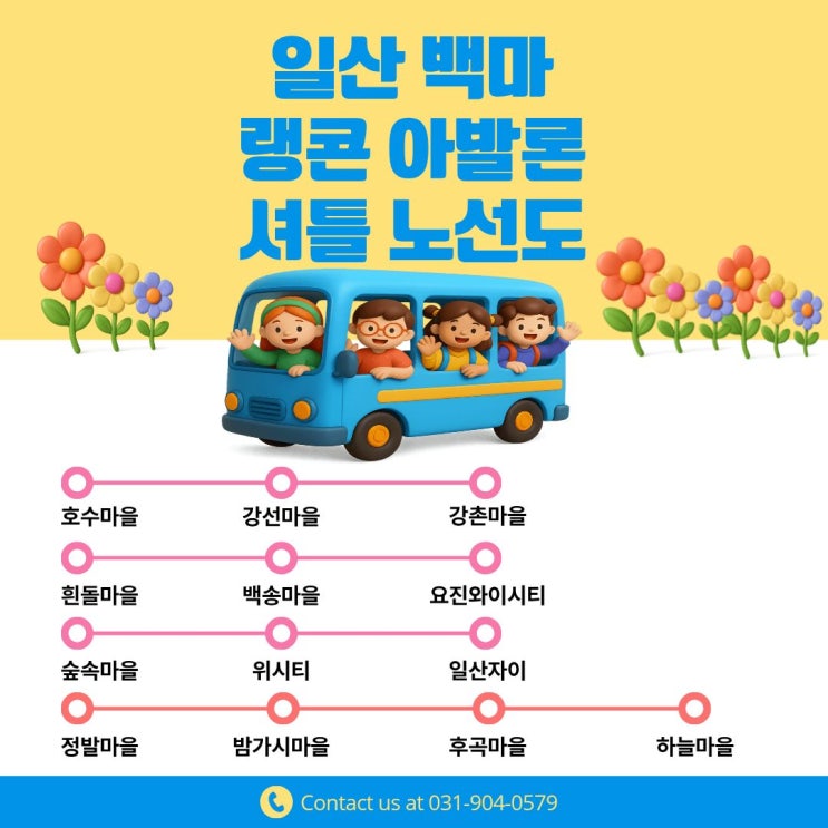 안녕하세요~ 일산 랭콘 아발론 캠퍼스입니다! 현재 저희 원에서는 총 4대의 셔틀버스가 운영 중입니다~ 호수마을 - 강선마을- 강촌마을 흰돌마을 - 백송마을- 요진와이시티 숲속마을 - 위시티 - 일산자이 정발마을- 밤가시마을 - 후곡마을- 하늘마을 노선도는 크게 이렇게 이루어져 있으며 세분화된 노선은 학원으로 문의해 주시면 더욱 자세히 상담해 드리겠습니다 감사합니다! <img src="https://blogthumb.pstatic.net/MjAyNjA0MTNfOTUg/MDAxNzc2MDcxMzgyNjQ1.JHT4jsAzI9szwzG294Z5HuqF9Z8elcqaAKUNSJ5n9CQg.JG03ck5pBapGLicbUi-4Z7uq1gkwmWg-BiESfp3pBj4g.JPEG/%BC%C5%C6%B2%B3%EB%BC%B11.jpg?type=s3" />