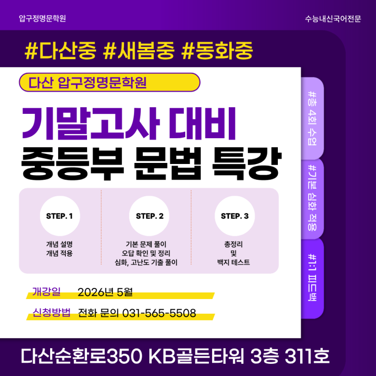 [다산직영원] 내신 역전의 기회! 2차 지필평가 국어 문법 '원포인트' 특강 (다산중, 새봄중, 동화중)