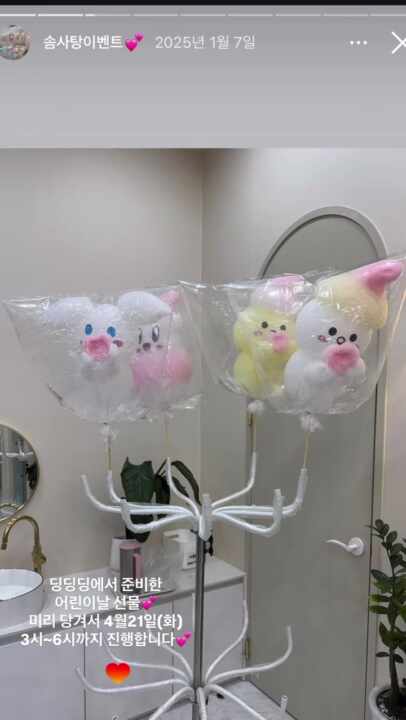 안녕하세요 딩딩딩뮤직스쿨에서 우리 딩둥이들을 위해 어린이날 선물로 솜사탕 이벤트를 준비했습니다 작년에 기억하시죠?! 너무 친절했던 달고 솜사탕 사장님을 어렵게 모셨어요 사장님 보시면 반갑게 맞이해 주세요 수업은 정상 수업이고..하원할 때 솜사탕을 나눠줍니다 딩딩딩원생에게만 주는 특별한 선물 화요일 수업이 없는 친구들은 21일 화요일 3시~6시 사이에 꼭 와서 받을 수 있도록 해주세요(수업 없이 솜사탕만 받아가세요) 딩딩딩원생 친동생,친언니,친형아는 꼭 함께 동반 방문 주셔야 솜사탕을 받을 수 있습니다. 동반 방문 아니시면 솜사탕 받으실 수 없으니 꼭 유의해주세요 <img src="https://phinf.pstatic.net/image.nmv/blog_2026_04_17_943/XROO4BKC5o_03.jpg?type=f480x480" />