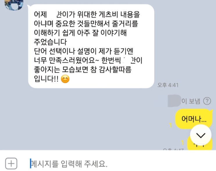 안녕하세요. 일주일간 성장하는 모습 기록 남깁니다. 4.9 첫 방문시 4.13 4.14 4.16 점점 발전하는 모습이 보이시죠? 하나하나 비어있는 부분 차곡차고 쌓으면서 성장하고 있습니다. 열심히 해줘서 기특하고 예쁩니다. 배움의 기쁨과 알아가는 즐거움을 느꼈던 시간이기를 바랍니다. 영어 원서도 읽고 기록 해보았습니다. 영어게임 시간에 찍었어요^^ 직접 마음에 들어서 고른 책이랍니다. 더욱 발전할 모습이 기대됩니다. #은계영어도서관 #은계영어학원 <img src="https://blogthumb.pstatic.net/MjAyNjA0MTdfMTQ4/MDAxNzc2NDI4Mjk2MTI5.0H1-uGvzSxHQFfd6Q8PN7RtiMIQ4u5auQkBQxG-u2YMg.oNL8uUxUnwewBipzgsr2ZzW3uWNrpxh7zU2tNFU_ePAg.JPEG/900_1776428294608.jpg?type=s3" />