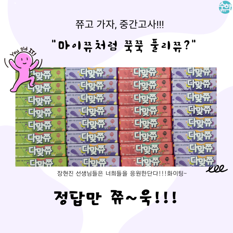 중간고사 기간, 우리 친구들 힘내라고 작은 응원을 준비했어요 중간고사 기간이 다가오면서 우리 친구들이 얼마나 열심히 준비하고 있을지 생각하니, 선생님들도 마음이 함께 분주해집니다 그래서 이번에는 작은 힘이 되었으면 하는 마음으로 달달한 응원 간식을 준비했어요 쫀득쫀득한 마이쮸로 당충전도 하고, 초콜릿으로 기분까지 업! “마이쮸처럼 쭉쭉 문제 풀리쮸?” “정답만 쮸~욱!!!” “정답만 쏙쏙!!!” 노일중 수학 서술형 감점 없이 쓰는 법 — 실전 채점 기준 공개 공부하다 보면 지치고 힘들 때도 있지만, 지금까지 쌓아온 노력은 절대 배신하지 않아요. 한 문제, 한 문제 풀어온 시간들이 모여서 분명 좋은 결과....... <img src="https://blogthumb.pstatic.net/MjAyNjA0MjJfMTgx/MDAxNzc2ODUwNTQ1Nzcy.nv95uz67DdsvQ8ni1G7840LjYYeeELnus-fzZ_iK2qog.JDi2UszJU9O7XrF5twwRbTYdHVWGN898dc8kjxaK5egg.PNG/%B3%EB%B6%F5%BB%F6_%C8%B8%BB%F6_%B1%CD%BF%A9%BF%EE_%C0%CF%B7%AF%BD%BA%C6%AE_%BC%F6%B4%C9_%C0%C0%BF%F8_%C0%CE%BD%BA%C5%B8%B1%D7%B7%A5_%C6%F7%BD%BA%C6%AE_%281%29.png?type=s3" />