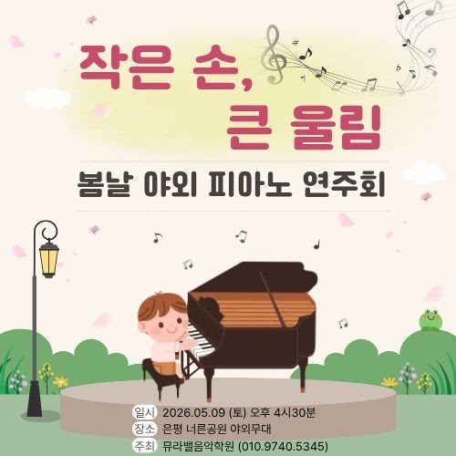 5월 9일, 작은 설렘을 준비 중입니다 뮤라밸학원 친구들이 버스킹을 위해 한 곡 한 곡 정성껏 연습하고 있어요. 서로 호흡을 맞추며 포핸즈 곡도 즐겁게 준비 중인데, 웃음이 끊이지 않는 연습 시간 덕분에 더 특별해지고 있습니다 무대 위에서 반짝일 아이들의 모습을 기대해주세요 ✨ <img src="https://blogthumb.pstatic.net/MjAyNjA0MTNfMjU1/MDAxNzc2MDM2NDE2NzE0.07YByXzpnhuzXNw4WsMqkN5W_FNv3i9FJw5Eqs3ZIo8g.z0ZZhC4ZMCKmylS2XQ17_za6GXiw-1O0S0MPW3oxOVkg.JPEG/1775374757168.jpg?type=s3" />