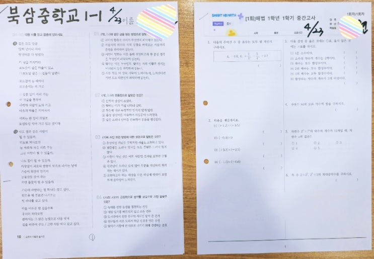 해법 중1 학부모님께 알려드립니다 오늘은 해법 중학교 1학년 1학기 중간고사 시험을 칩니다 과목은 국어.수학 입니다 시험지 및 성적은 다음주 4월28일(화)에 보내 드릴 예정입니다 확인 후 시험결과 화일은 해법으로 다시 보내주시면 됩니다 1학기 기말고사도 동일하게 이루어집니다 4월29일(수)은 열심히 시험준비 한 학생들 동기부여 차원에서 중2~3학년 선배들처럼 휴강합니다^^ 4월30일(목)은 정상수업합니다 일정 참고 부탁드립니다 중학교 1학년 1학기 중간고사 시험지 #칠곡북삼인평오태수학학원 #칠곡북삼인평오태수학교내신 #칠곡북삼인평오태초등중등수학전문학원 #칠곡북삼인평오태수학잘가르치는학원 #칠곡북삼인평오태수학1등학원....... <img src="https://blogthumb.pstatic.net/MjAyNjA0MjJfMTYx/MDAxNzc2ODYzNzcxNDEy.rnPDrts-Sl8JU2V80yBTVUB1IqoamDf3K1flUkA1atIg.5Il48_T9GLbQc_VFx_x1X0Vdtw5bXjZF0NHygqa3c60g.JPEG/900_1776863770686.jpg?type=s3" />