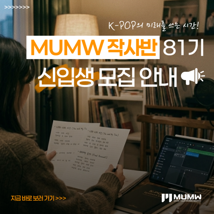 [논현동 작사학원] K-POP의 미래를 쓰는 시간, MUMW 작사반 81기 신입생 모집 안내