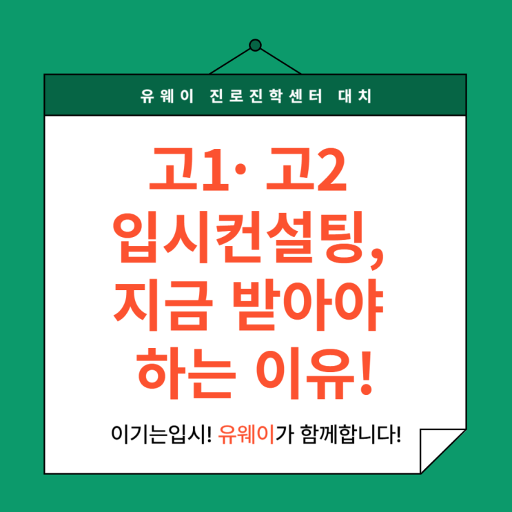 [유웨이 대치센터] 고1·고2 입시컨설팅, 지금 받아야 하는 이유!