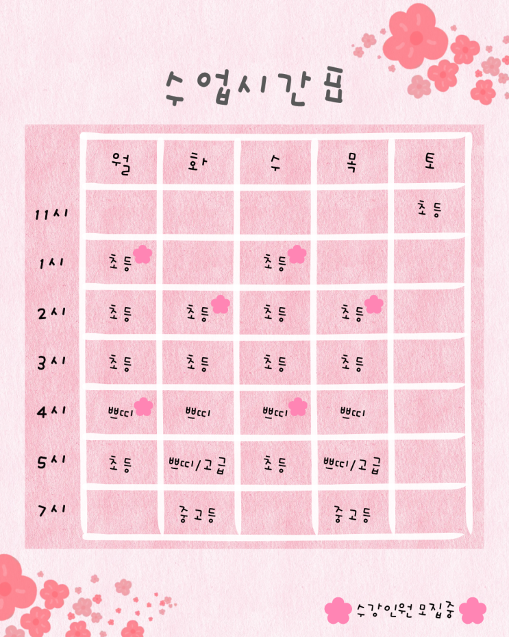 5월 시간표 및 일정 안내