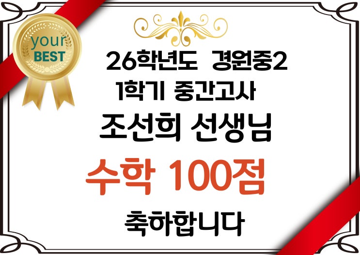 26학년도 중간고사 성적우수학생들! 축하합니다!