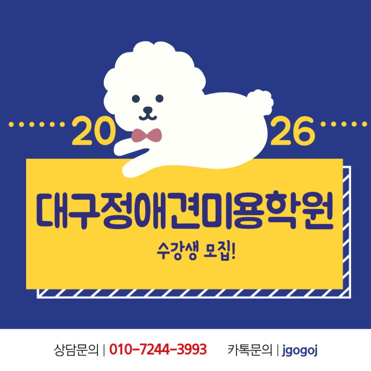 대구정애견미용학원 국비보다 빠르고, 내일배움카드보다 실속 있는 대구정애견미용학원 수성구로 이전 오픈!