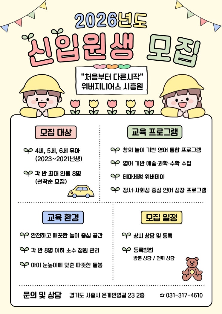 [시흥 유아 영어] 2026 원아 상시모집 — 위버지니어스 시흥원