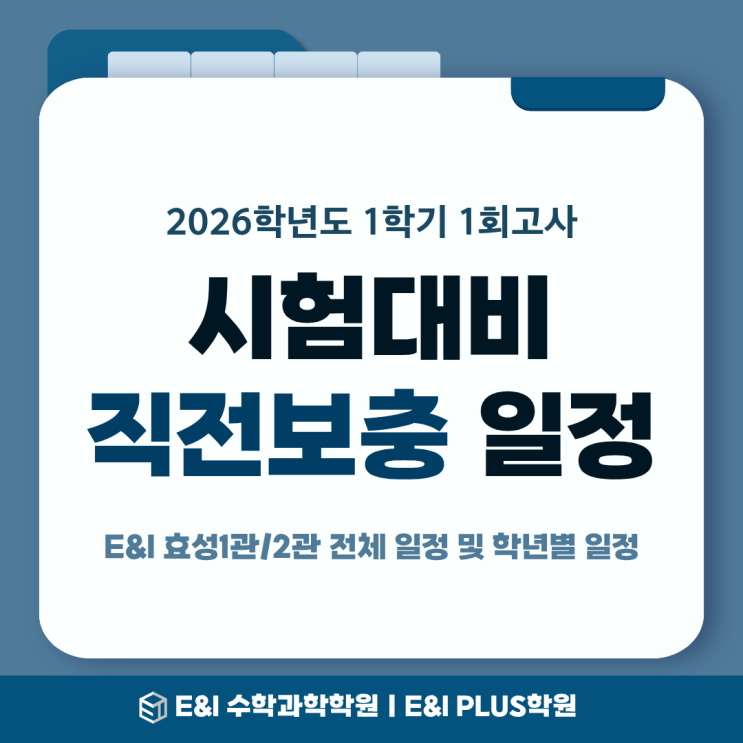 안녕하세요 효성동 초/중/고 영어 수학 과학학원 E&I 수학과학학원 ㅣ E&I PLUS학원 입니다 2026학년도 1학기 1회고사 직전보충 일정 안내드리겠습니다. 효성 1관 직전보충 일정 E&I 수학과학학원 효성 1관 직전보충 일정입니다. 효성 2관 직전보충 일정 E&I PLUS학원 효성 2관 직전보충 일정입니다. E&I 수학과학학원 효성1관 ㅣ 초중고 수학/과학 E&I PLUS 학원 효성2관 ㅣ 초중고 수학/과학/영어 상담문의 : 032-543-8310 #효성동수학학원 #효성동과학학원 #효성동영어학원 #효성동학원 <img src="https://blogthumb.pstatic.net/MjAyNjA0MjJfODUg/MDAxNzc2ODU0OTgyMTIy.QIM7cdmLdW5bsCINltLvW3TncOKnQXRJ0lUhYWB5BBUg.4S3EASLUI6DcX4II3B5gHHSrjQn_mI3BGqx1WqB4doYg.PNG/1.png?type=s3" />