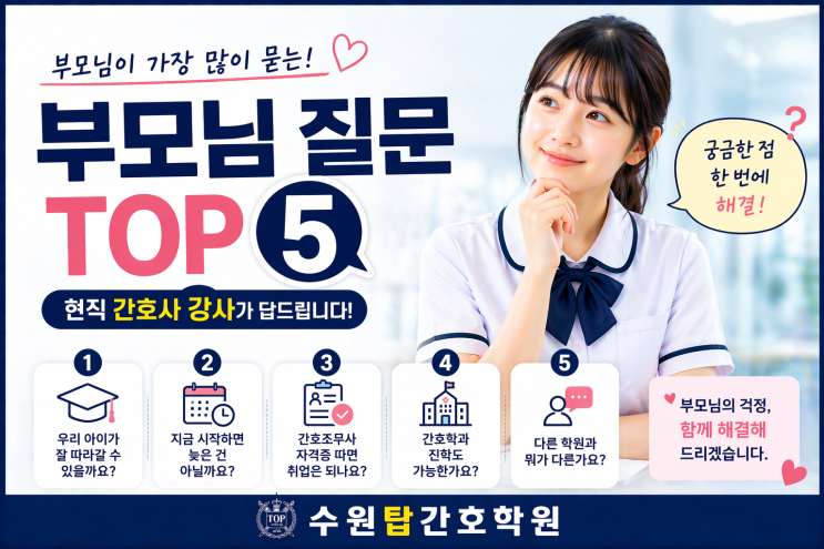 부모님이 가장 많이 묻는 질문 TOP5 (현직 간호사 강사가 답드립니다)